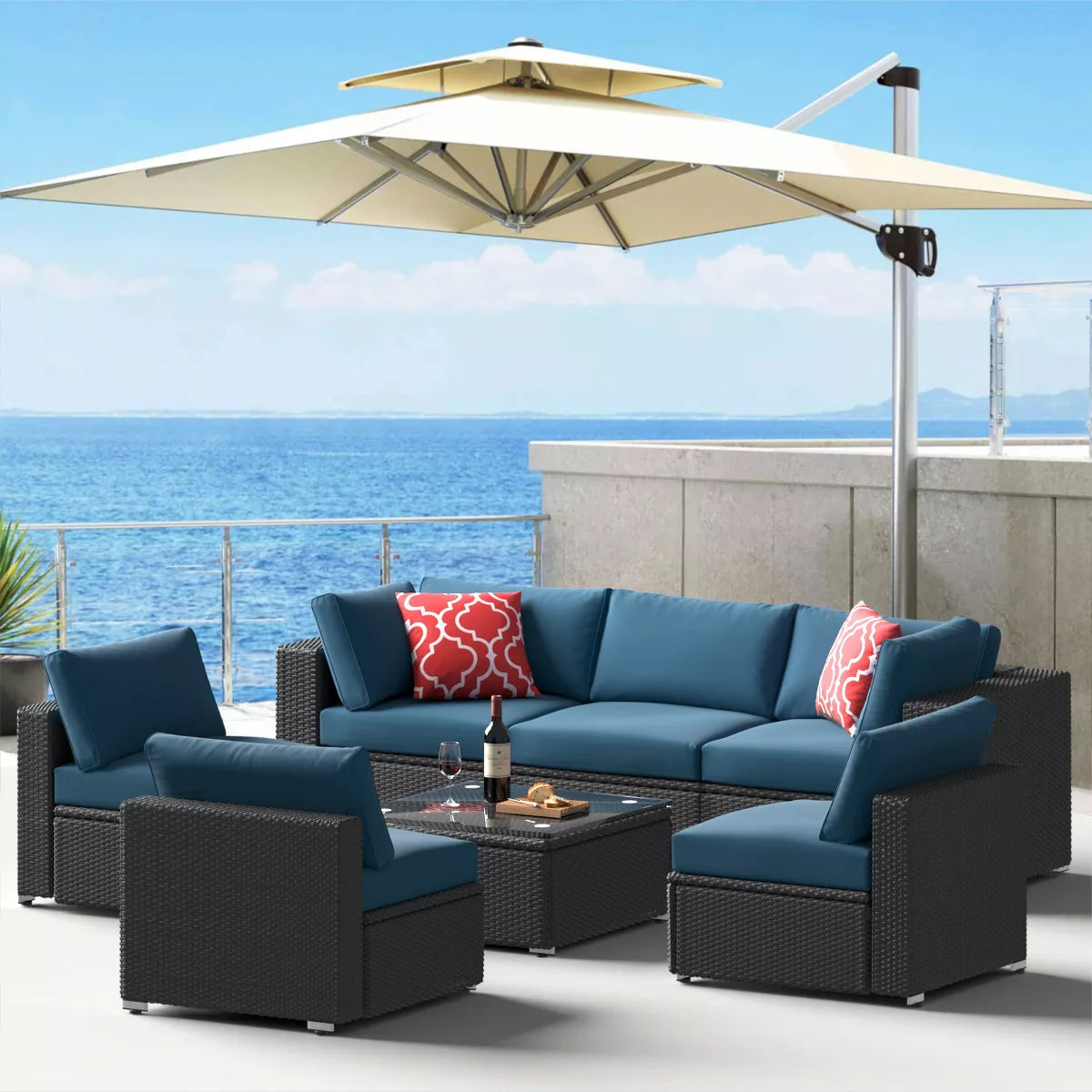 ELJGET outdoor patio furniture set aims to improving your happiness of outdoor life. This sofa set is made of durable rattan wicker and anti-rust steel frame which improves the sofa’s stability and lifespan. The patio sofa is suitable for different occasions with different combinations which absolutely can meet your demand considerably.